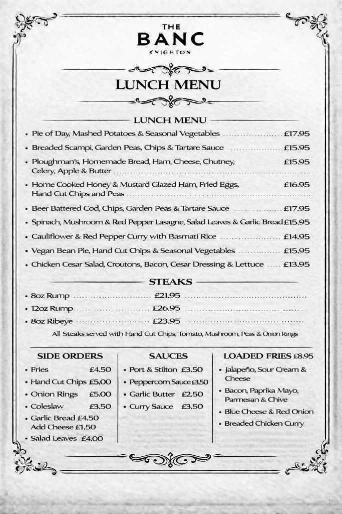 Sunday Lunch Menu served on Sunday only.